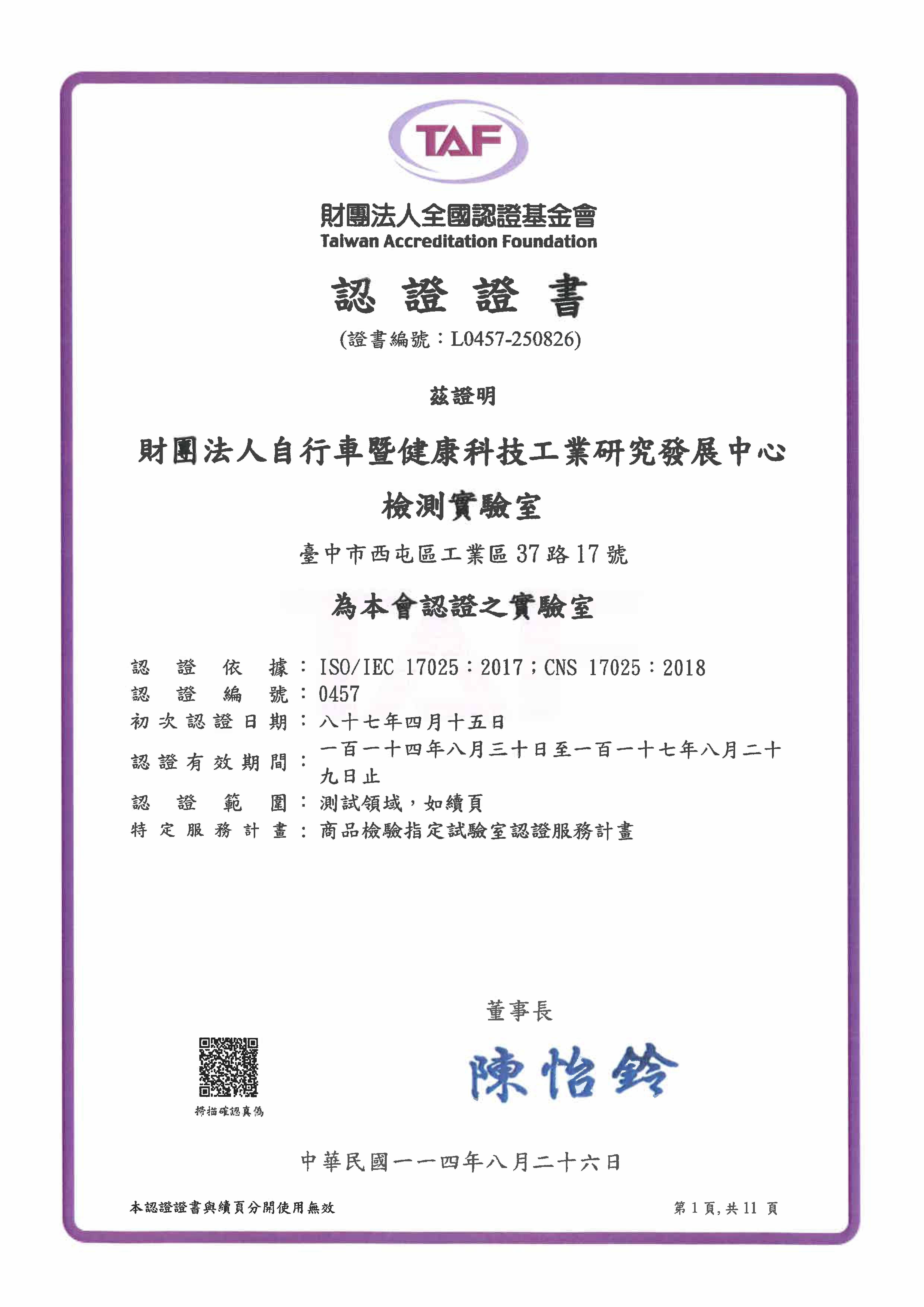 ● TAF ISO 17025 測試實驗室 ● 認證編號:0457 ● 認可項目(觀看連結:繁體、English) ● ILAC相互承認協議: 國際實驗室認證聯盟相互承認協議 International Laboratory Accreditation Cooperation Mutual Recognition Arrangement ILAC MRA簽署會員FULL MEMBERS (MRA SIGNATORIES)(60個經濟體、73個認證機構) 資料日期:2011年11月18日 (最新資訊請上www.ilac.org網站查詢) ● 以上資料來源:TAF網站