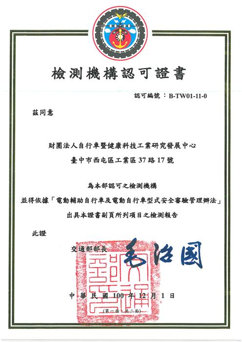 ● 自行車中心獲日本自轉車協會授權為海外檢查業務,亞洲唯一認可機構