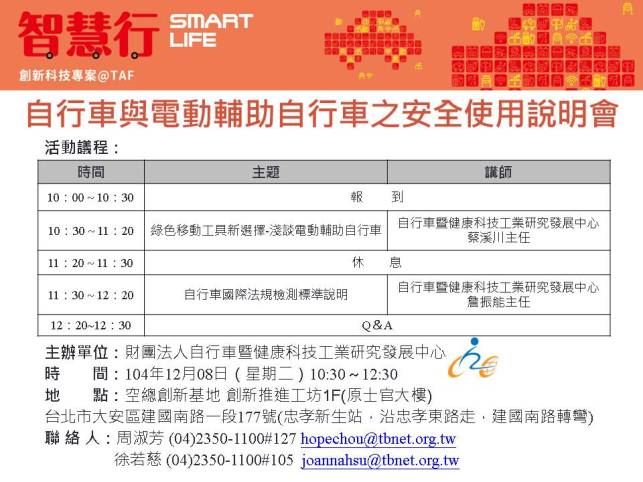 財團法人自行車暨健康科技工業研究發展中心 版權所有 © Copyright   2014 CHC  All rights reserved